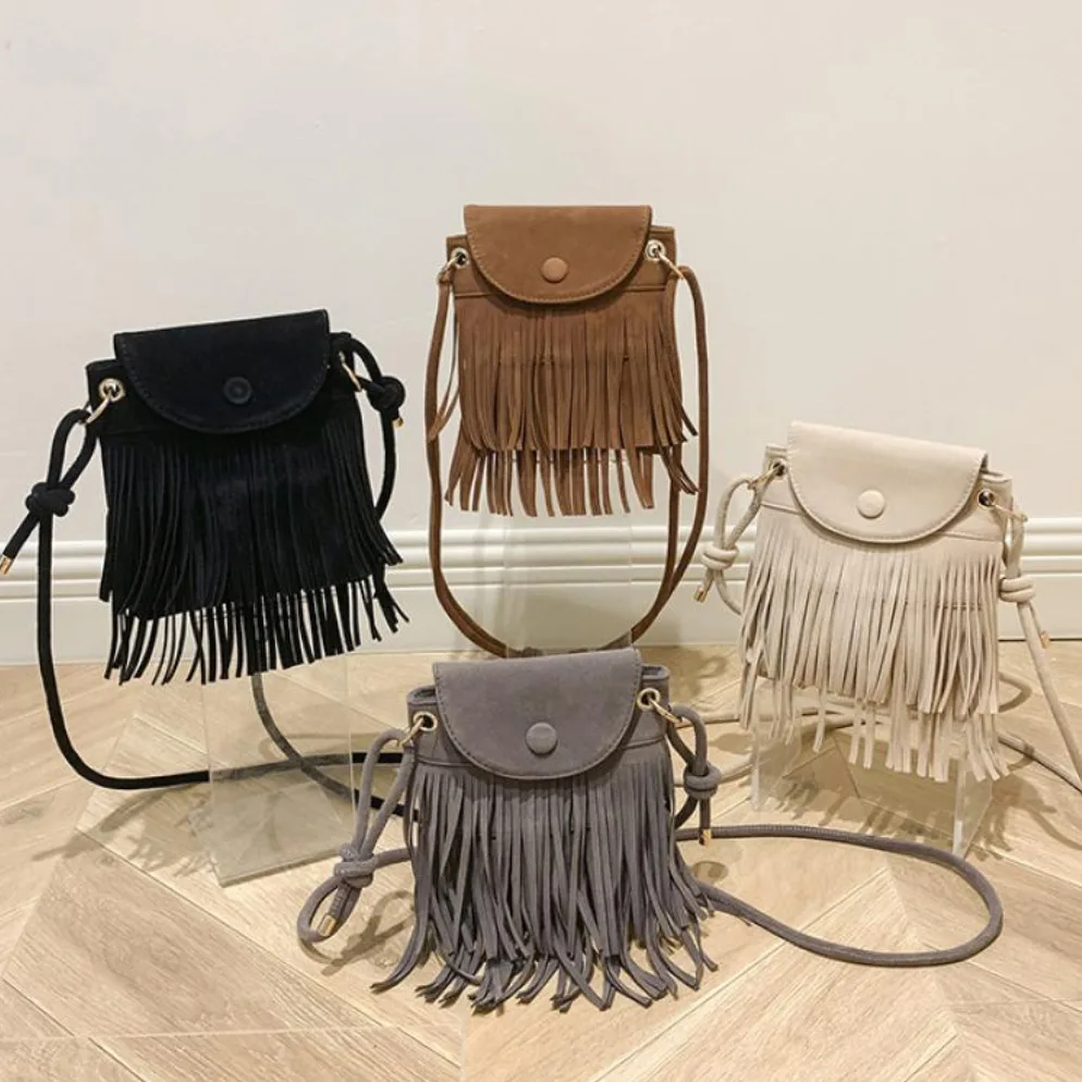 - stijl: crossbodytas/schoudertas met franjes in Ibiza-stijl