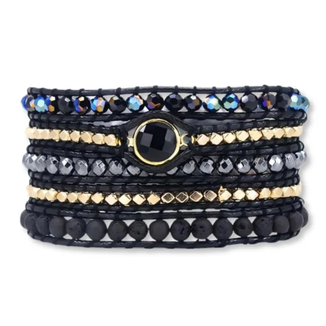Herenarmband Mats Zwart Wit – Sluiting Metaal Goud