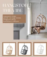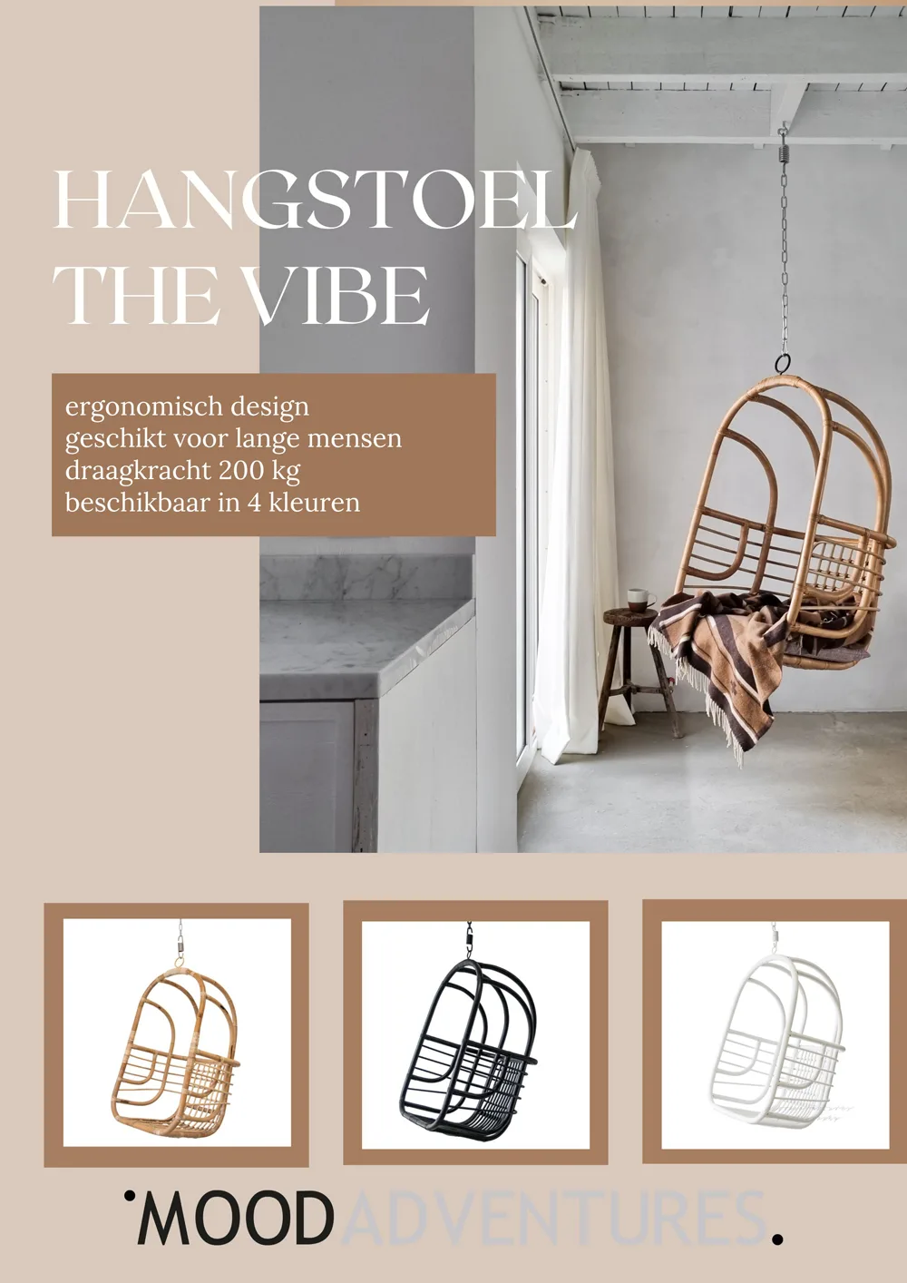 Of je nu wilt loungen, je woonkamer wilt verfraaien of een gezellig hoekje wilt creëren in de kinderkamer, onze hangstoel “The Vibe” biedt de perfecte mix van functionaliteit en stijl. Ervaar het ultieme zitcomfort en voeg een vleugje rustgevende sfeer toe aan je leefruimte met deze prachtige en veelzijdige hangstoel.