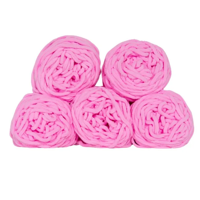 Set 5 Bollen Chunky Wol Pastel Roze
