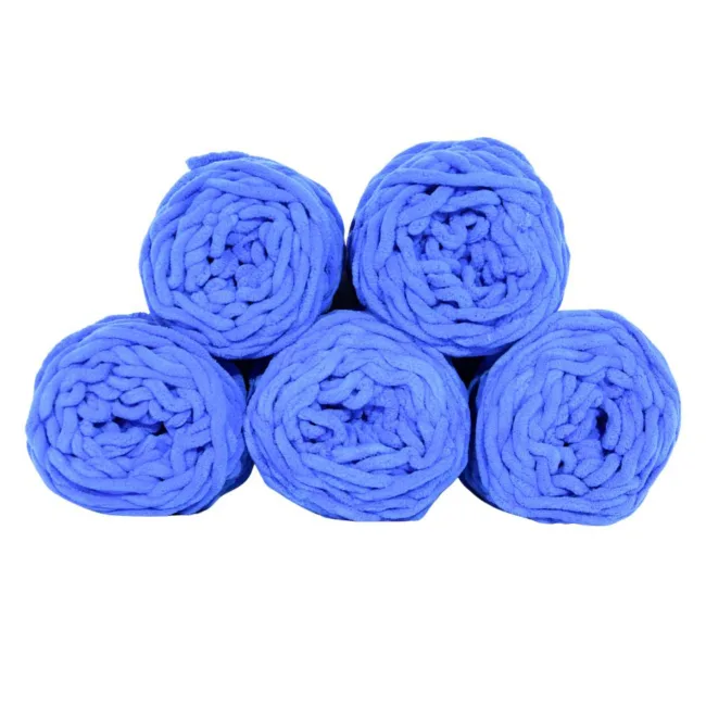Set 5 Bollen Chunky Wol Blauw