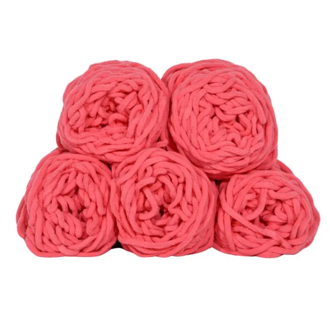 Set 5 Bollen Chunky Wol Licht Rood
