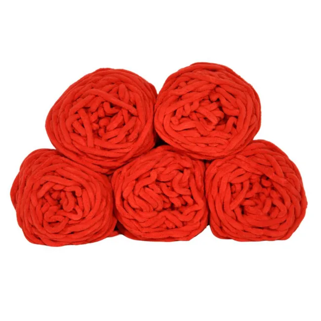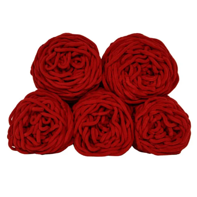 Set 5 Bollen Chunky Wol Rood