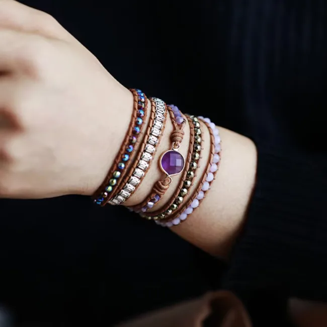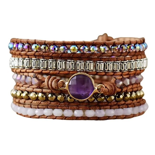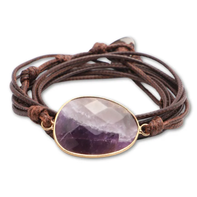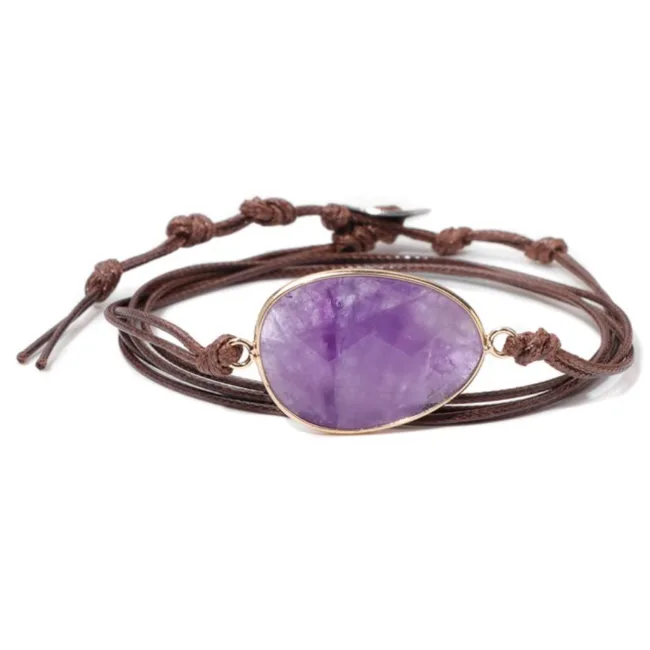 Wikkel Armband Edelsteen Amethist Bruin Waxcord