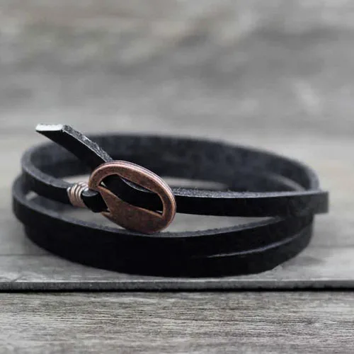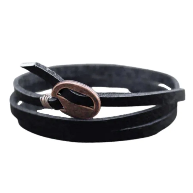 Wikkel Armband Donkerbruin Leer Gesp Brons