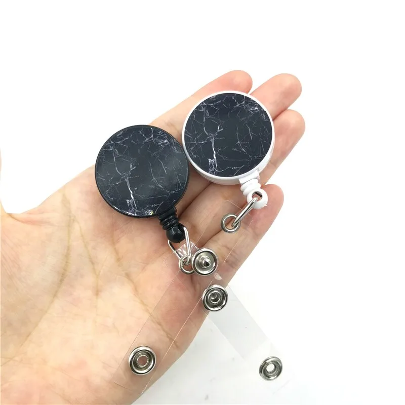 Deze badgehouder met clip in marmerprint is een perfecte toevoeging voor jouw pasjes, toegangspassen en andere ID-kaarten op werk, school of bijvoorbeeld festivals of sportclubs. De badgehouder is uitrolbaar tot 60 cm en 360° draaibaar. Deze pashouder is gemakkelijk te bevestigen aan je broek, riem en nekkoord. Het is onmisbaar op de werkvloer, en andere gelegenheden.