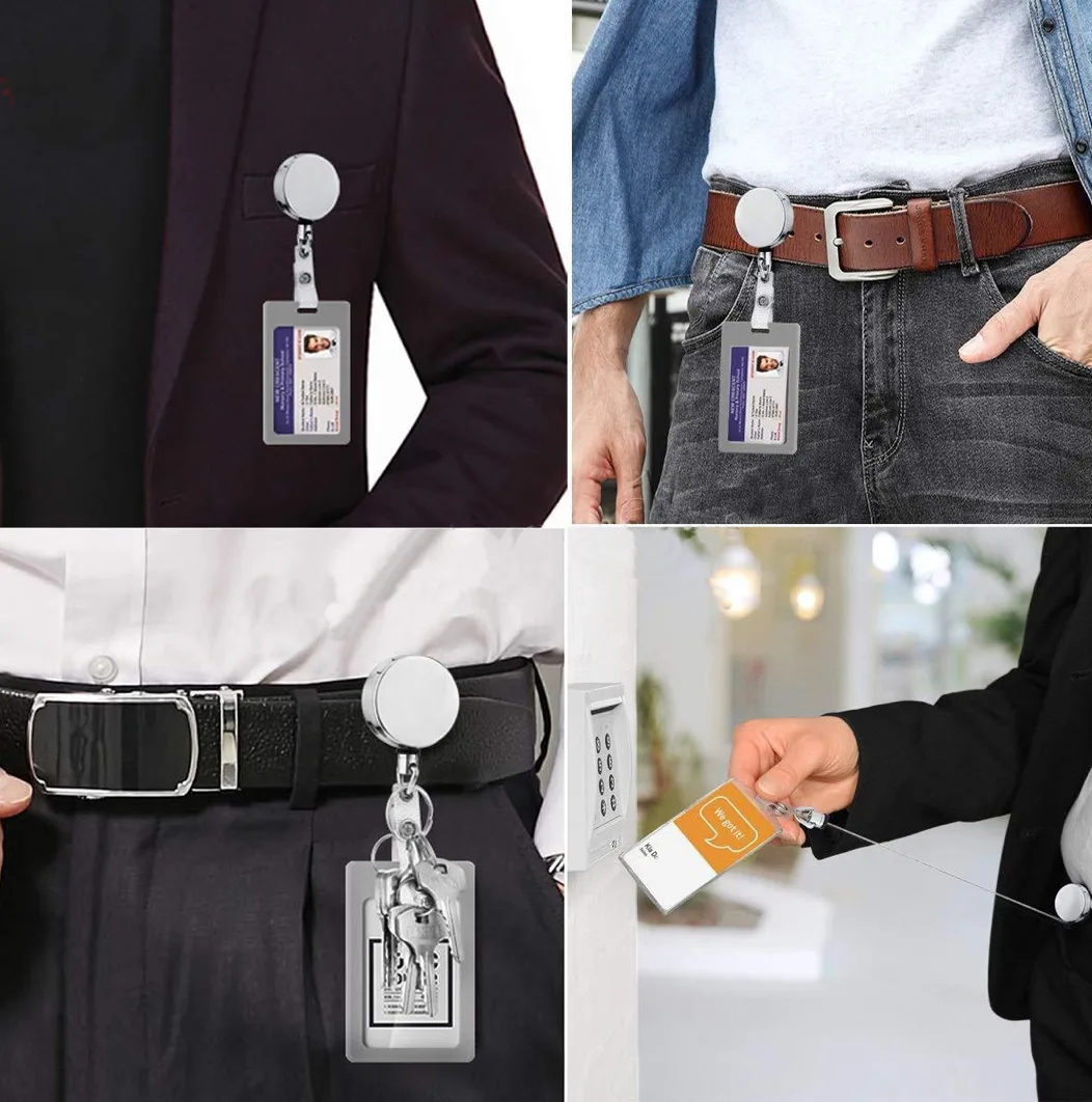 Stel je voor dat je nooit meer je passen kwijtraakt op een beurs, festival of in een lift. Met onze afrolbare stevige badgehouder hoef je je daar geen zorgen meer over te maken. Gemaakt van duurzaam RVS, is deze badgehouder voorzien van een handige clip om je badge veilig op zijn plaats te houden, zoals bijvoorbeeld aan je borstzak, broek, of riemlus. Het beste van alles is dat deze badgehouder 360 graden roteerbaar is, waardoor het gemakkelijk is om je badge aan te passen aan de perfecte kijkhoek.