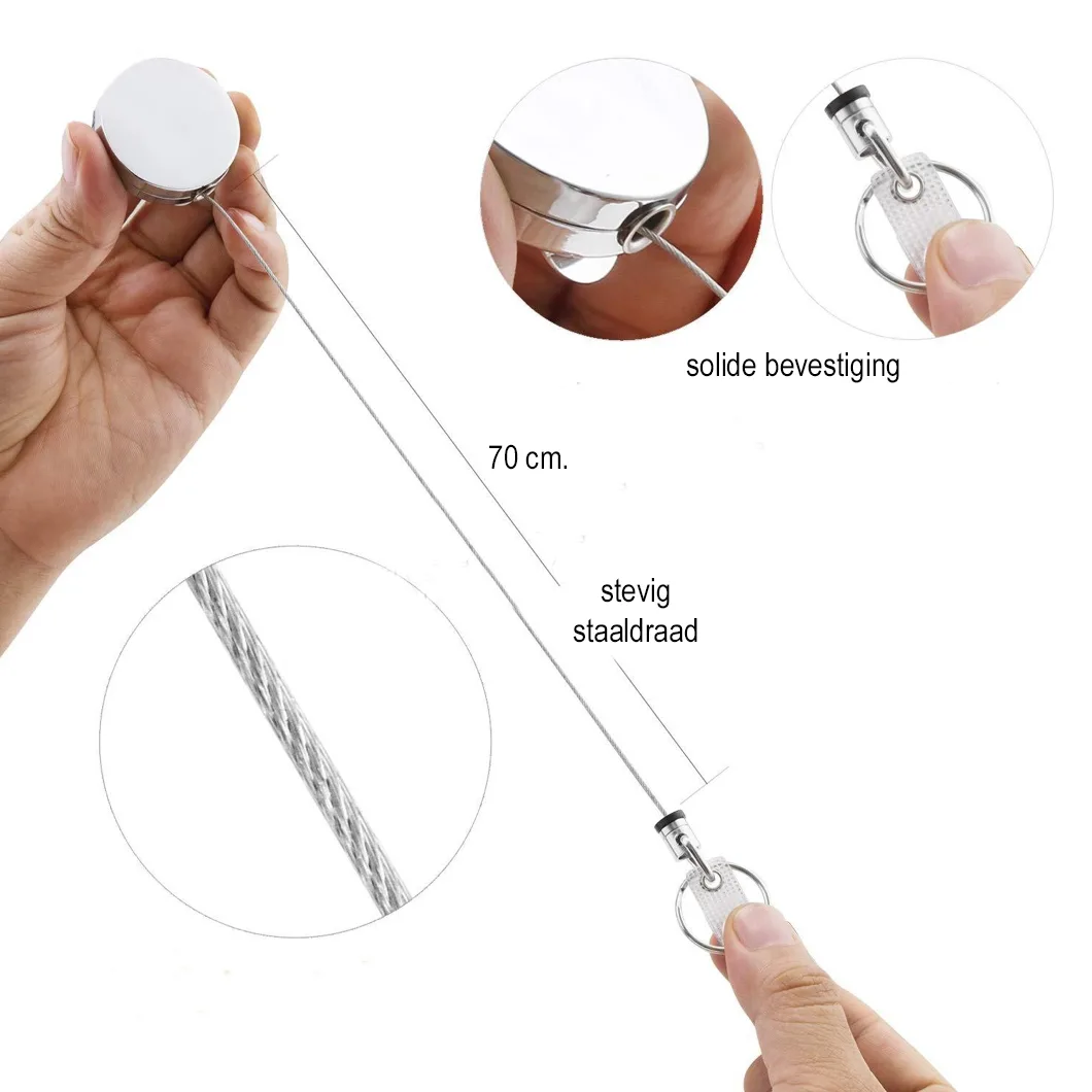 - Afrolbaar stalen koord met een lengte van 70 cm.