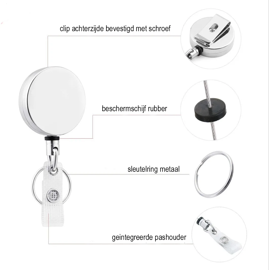 Stel je voor dat je nooit meer je passen kwijtraakt op een beurs, festival of in een lift. Met onze afrolbare stevige badgehouder in de kleur zwart hoef je je daar geen zorgen meer over te maken. Gemaakt van duurzaam RVS, is deze badgehouder voorzien van een handige clip om je badge veilig op zijn plaats te houden, zoals bijvoorbeeld aan je borstzak, broek, of riemlus. Het beste van alles is dat deze badgehouder 360 graden roteerbaar is, waardoor het gemakkelijk is om je badge aan te passen aan de perfecte kijkhoek.