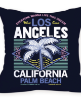 Deze zomerse kussenhoes met een vintage strand uitstraling heeft als hoofdkleuren donkerblauw en wit en geeft je bank of stoel meteen een beachy look! Deze trendy kussenhoes is voorzien van de tekst: Los Angeles California Palm Beach.