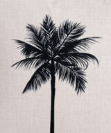 De kussenhoes is voorzien van een rits, heeft aan de voorkant een vintage print van een palmboom en is aan de achterkant effen naturel.