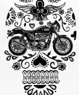 De kussenhoes heeft aan de voorkant een print van een schedel en is aan de achterkant effen wit.