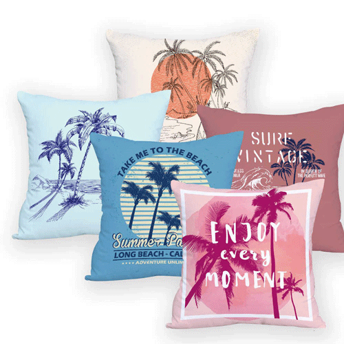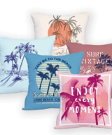 Deze zomerse kussenhoes met een vintage strand uitstraling heeft als hoofdkleur roze en geeft je bank of stoel meteen een beachy look!