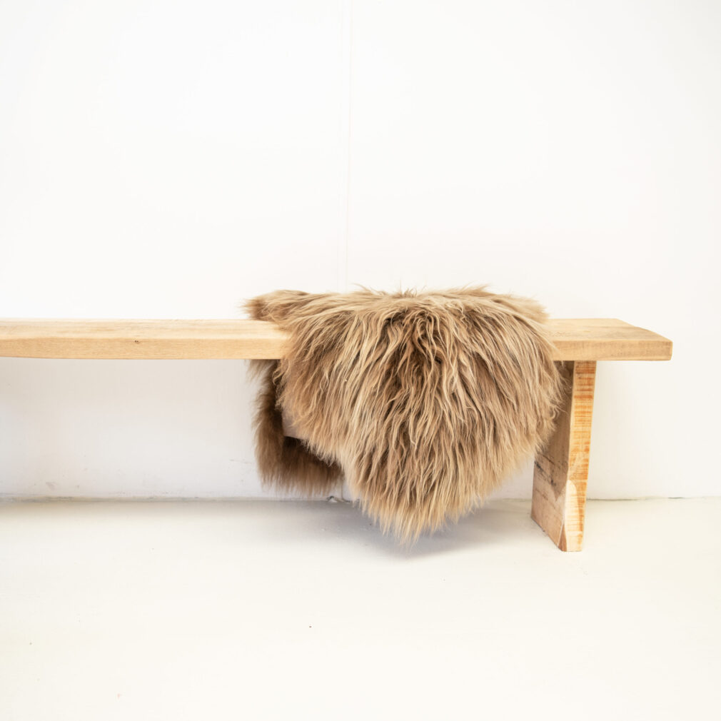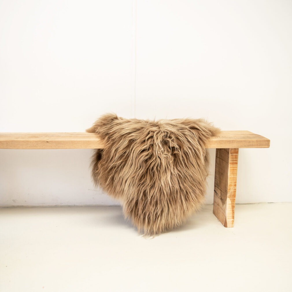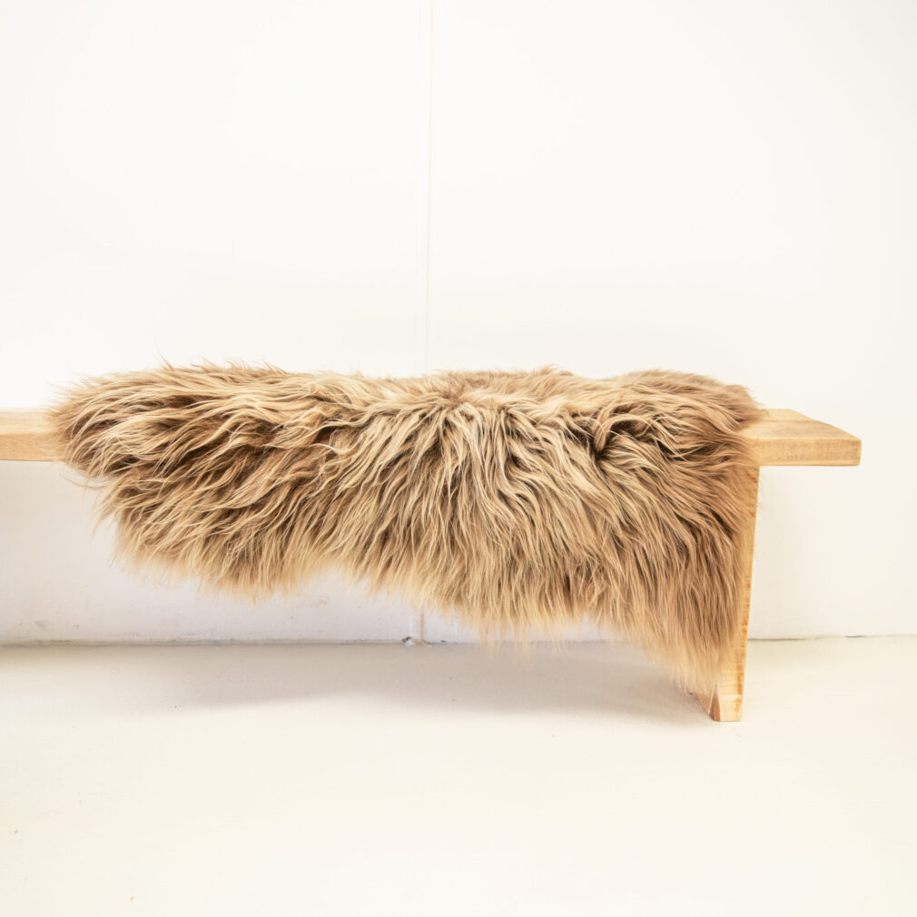 Deze prachtige, lichtbruine schapenvacht is afkomstig van het Ijslandse schapenras de Ijslander. Dit schapenras levert veel mooie, langharige schapenvachten van hoge kwaliteit. De vachten zijn erg sterk, slijtvast en hebben een mooie glans.