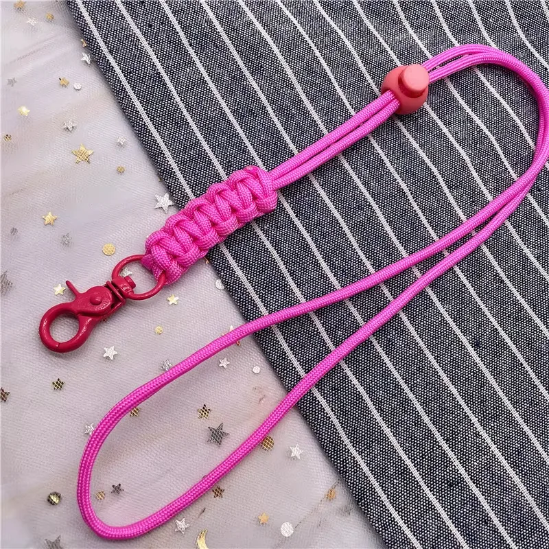 Met de Travel Cords keycord gevlochten roze raak je je sleutels nooit meer kwijt. Dit trendy lanyard is niet alleen praktisch, maar ook stijlvol. Of je het nu gebruikt als tashanger, sleutelhanger of telefooncord, het ligt altijd gemakkelijk in de hand. De verstelbare lus zorgt ervoor dat je het keycord hoog en laag om je hals kunt dragen, ideaal tijdens het sporten!