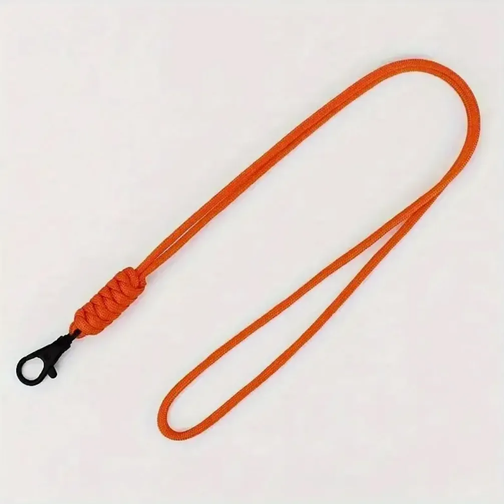 Deze opvallende keycord in geknoopt oranje is een must-have accessoire voor wie een stevig en stijlvol ontwerp zoekt. Gemaakt van duurzaam nylon en polyester, biedt deze paracord lanyard optimale sterkte voor het veilig dragen van sleutels, telefoon en andere essentials. Met een stevige zwarte karabijnhaak en een speciaal telefooncord is deze lanyard ideaal voor dagelijks gebruik en intensieve activiteiten.