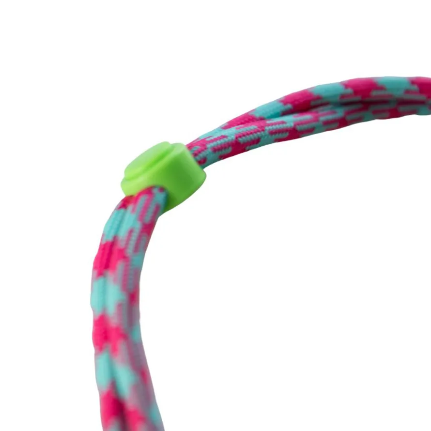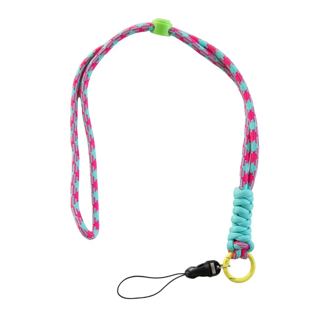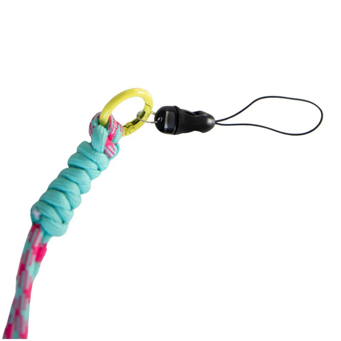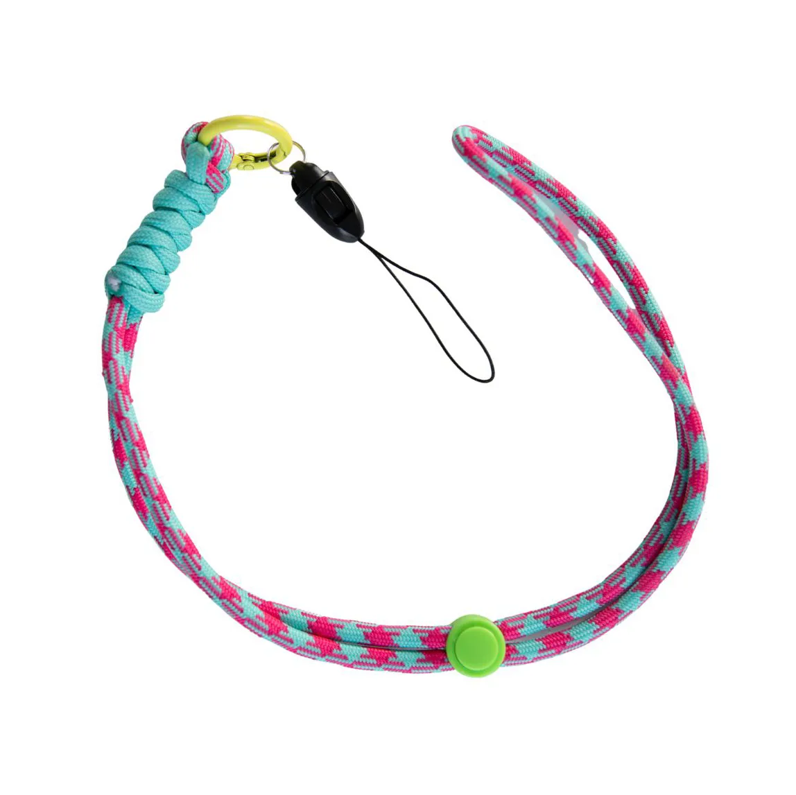 Dit stevige roze en turquoise kleurige keycord is voorzien van een verstelknop, zodat je je sleutels en telefoon gemakkelijk om je pols kan dragen. Dit handige lanyard ligt gemakkelijk in de hand en is leuk om mee te nemen als tashanger, sleutelhanger of als telefooncord. Vanwege de lengte van dit keycord is deze ook zeer geschikt voor autosleutels. Aan de stevige kunststof ringsluiting kun je meerdere sleutels, je telefoon, en andere spulletjes kwijt.