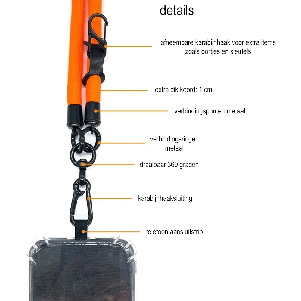 Dit stevige lanyard beschikt tevens over een extra afneembare haak voor bijvoorbeeld oortjes, zonnebril en andere items. Daarnaast zorgt het duurzame nylon materiaal ervoor dat de keycord bestand is tegen slijtage en langdurig gebruik.