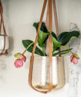 Dit trendy set van Plantenhanger leer Pelle + Pot Karakter pot Goud maakt je living helemaal compleet! Wordt geleverd exclusief plant.