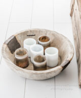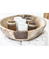 Deze bijzondere schalen van hout zijn afkomstig uit Indonesië en erg mooi met kaarsen, een beeld of een plant.