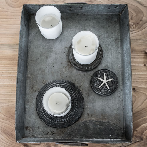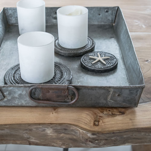 Stoere schalen en trays van metaal, met een “Used” look.