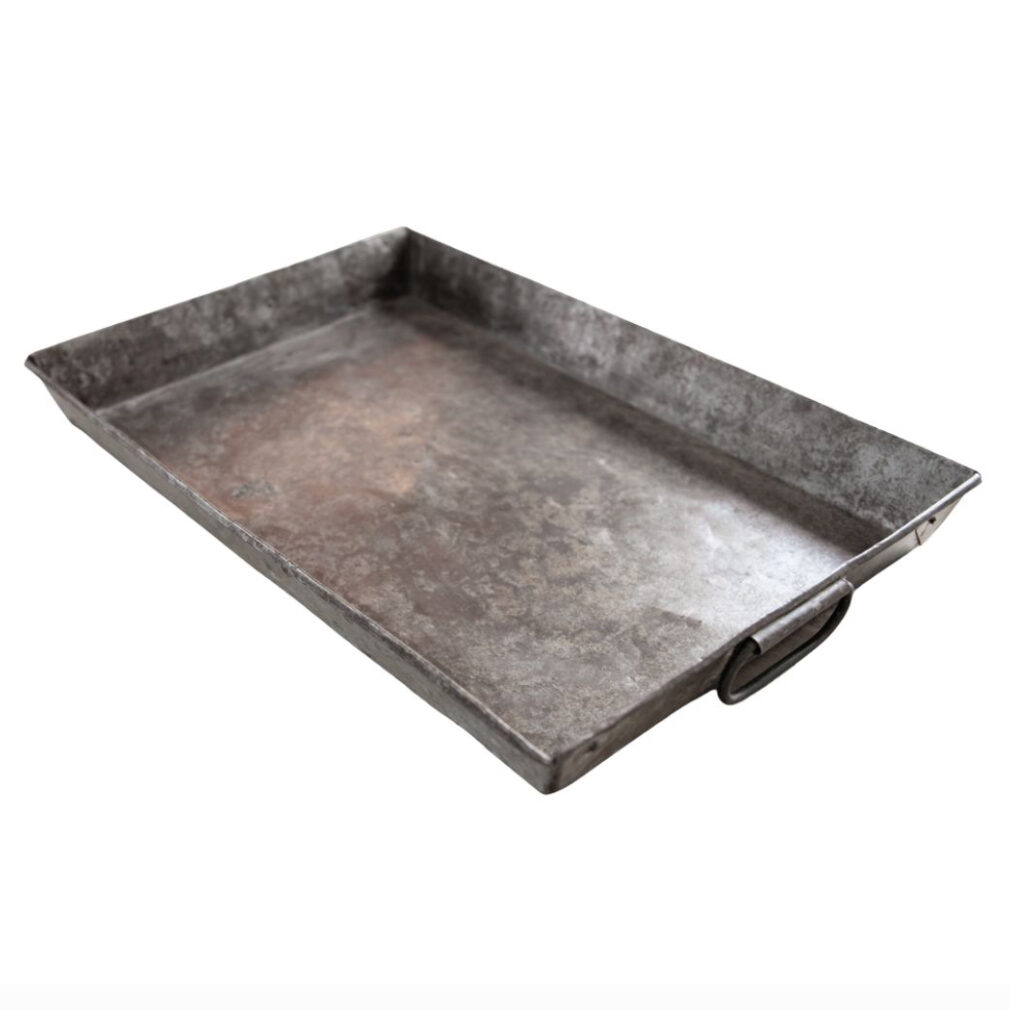 Deze rechthoekige vintage tray metaal met handvaten is prachtig om drankjes op te serveren, maar ook leuk met waxinelichtjes en kaarsen op je eettafel. Combineer hem met meerdere schalen voor een speels effect!
