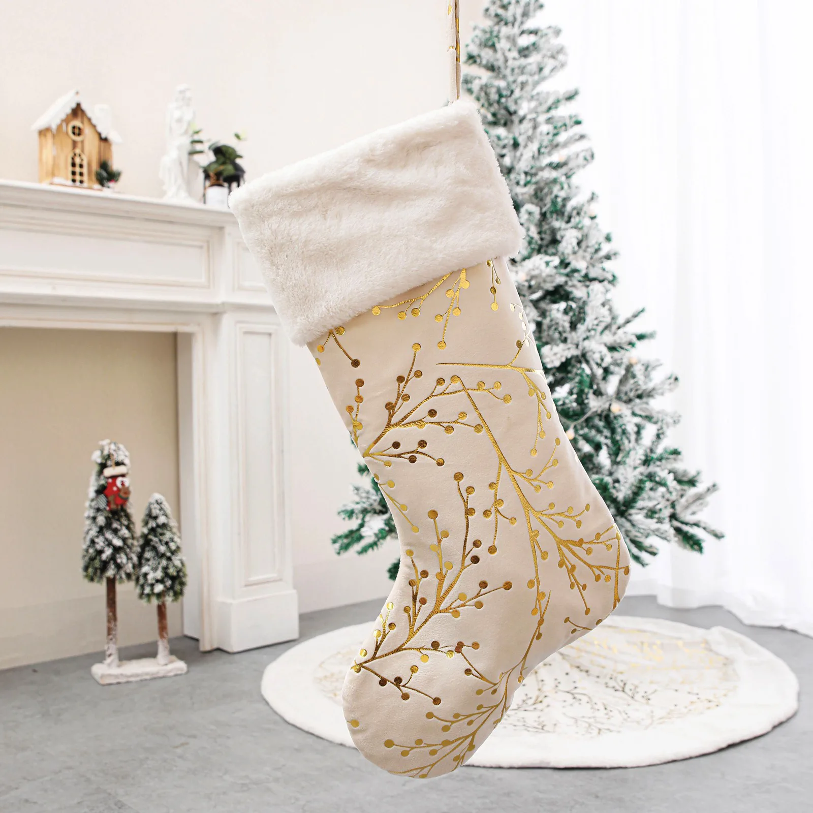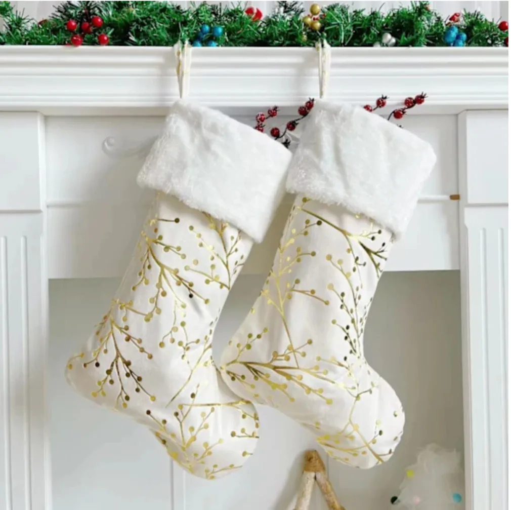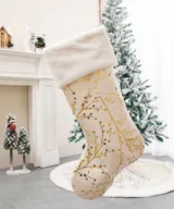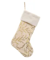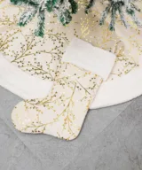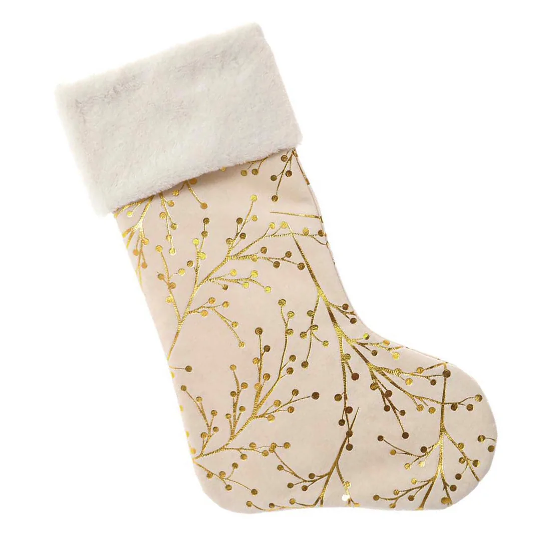 Breng de magie van de kerst in huis met deze prachtige kerstsok Goud-Champagne! Deze feestelijke kerstdecoratie is voorzien van een stijlvolle ophanglus, zodat je hem eenvoudig kunt ophangen aan de open haard, deur of muur. De sok heeft een opvallende dubbelzijdig print van gouden takken met een glanzende afwerking voor een luxe uitstraling.