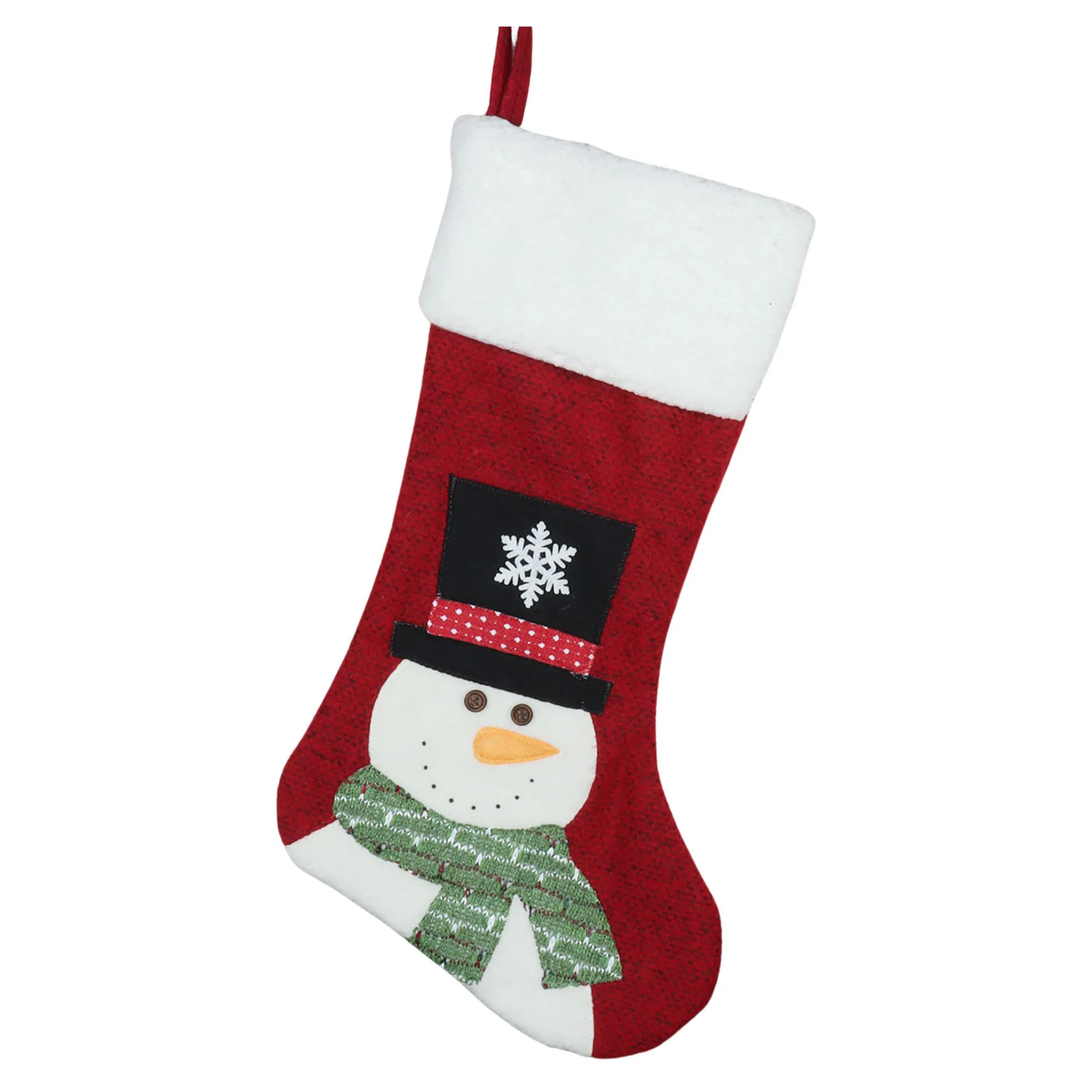 Breng de magie van de kerst in huis met deze prachtige kerstsok Sneeuwpop Rood! Deze feestelijke kerstdecoratie is voorzien van een stijlvolle ophanglus, zodat je hem eenvoudig kunt ophangen aan de open haard, deur of muur. De sok heeft een opvallend eenzijdig 3D-effect en is zorgvuldig geborduurd voor een luxe uitstraling.