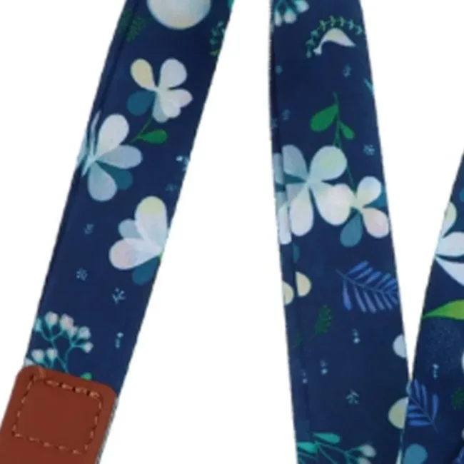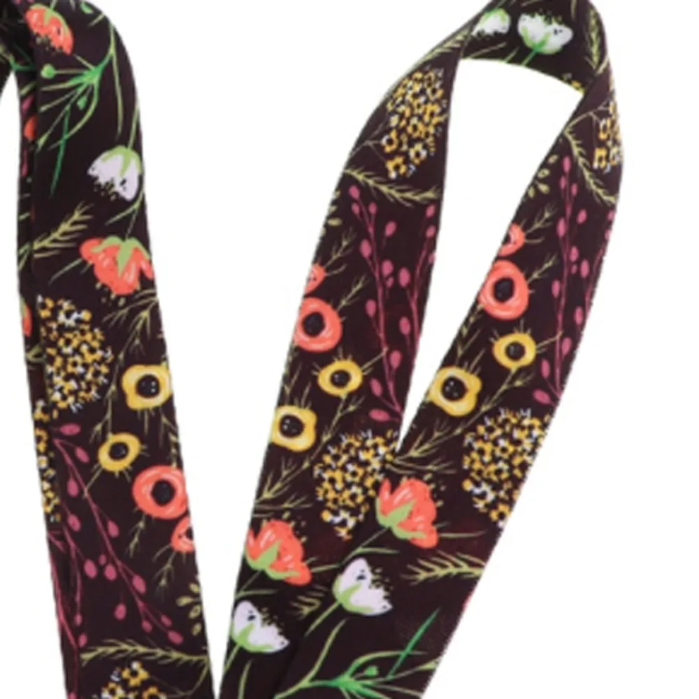 Dit stevige keycord met een mooie print van bloemen zwart is voorzien van een metalen haaksluiting en een telefooncord.