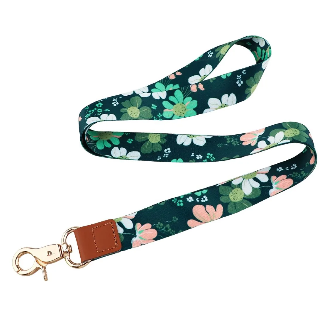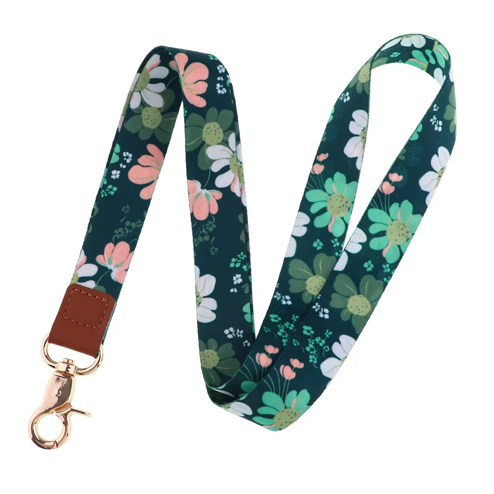 Dit stevige keycord met een mooie print van bloemen is voorzien van een goudkleurige metalen haaksluiting en een telefooncord.