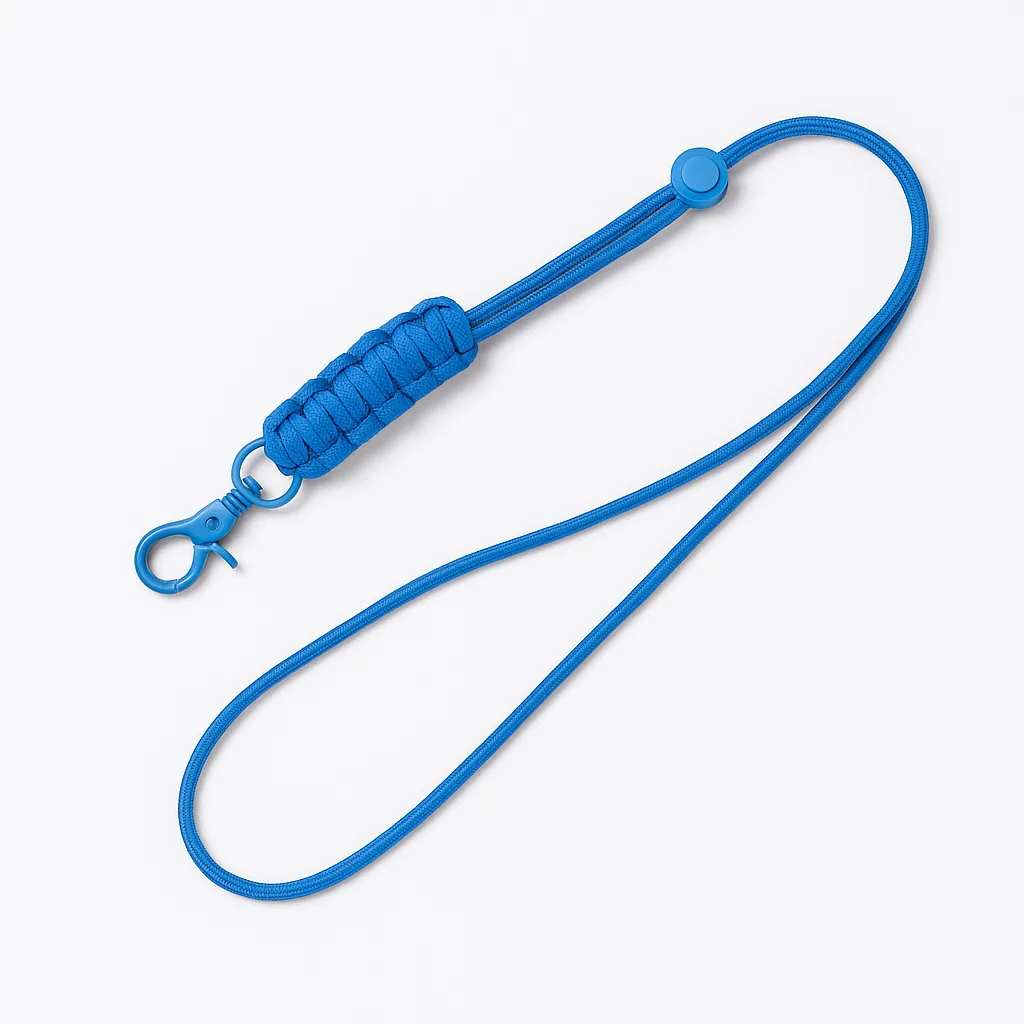 Met de Travel Cords keycord gevlochten blauw raak je je sleutels nooit meer kwijt. Dit trendy lanyard is niet alleen praktisch, maar ook stijlvol. Of je het nu gebruikt als tashanger, sleutelhanger of telefooncord, het ligt altijd gemakkelijk in de hand. De verstelbare lus zorgt ervoor dat je het keycord hoog en laag om je hals kunt dragen, ideaal tijdens het sporten!