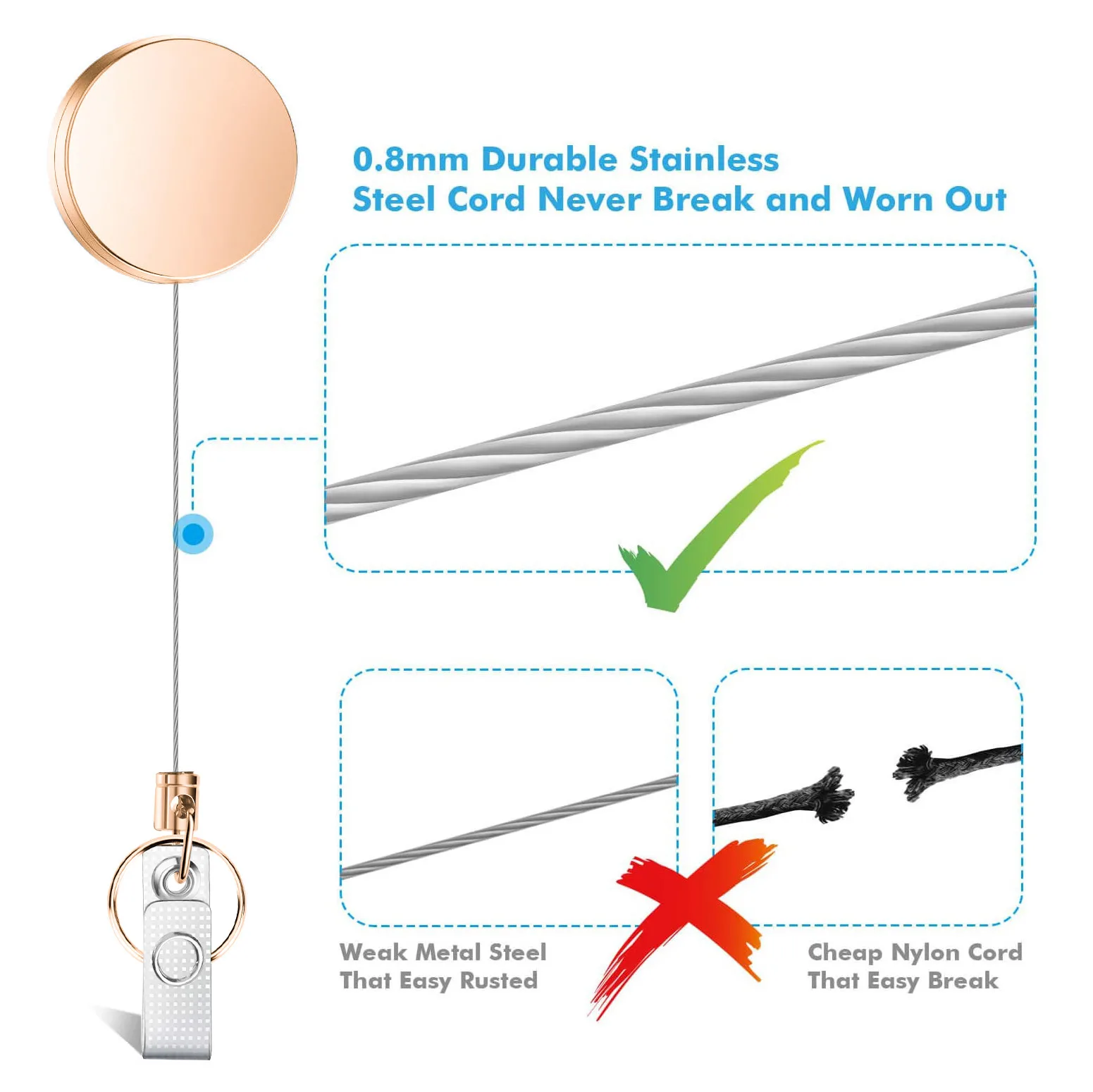 Stel je voor dat je nooit meer je passen kwijtraakt op een beurs, festival of in een lift. Met onze afrolbare stevige badgehouder in rosè goud hoef je je daar geen zorgen meer over te maken. Gemaakt van duurzaam RVS, is deze badgehouder voorzien van een handige clip om je badge veilig op zijn plaats te houden, zoals bijvoorbeeld aan je borstzak, broek, of riemlus. Het beste van alles is dat deze badgehouder 360 graden roteerbaar is, waardoor het gemakkelijk is om je badge aan te passen aan de perfecte kijkhoek.
