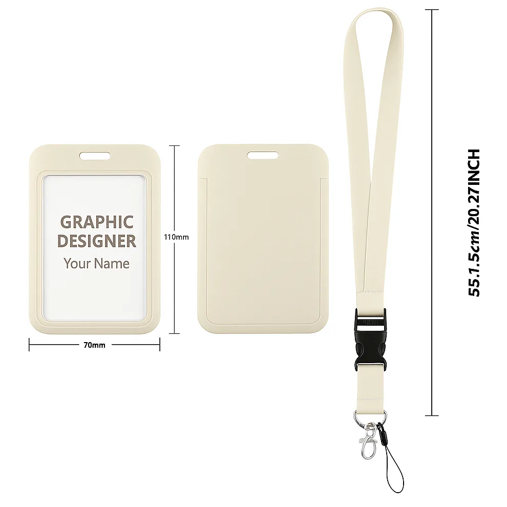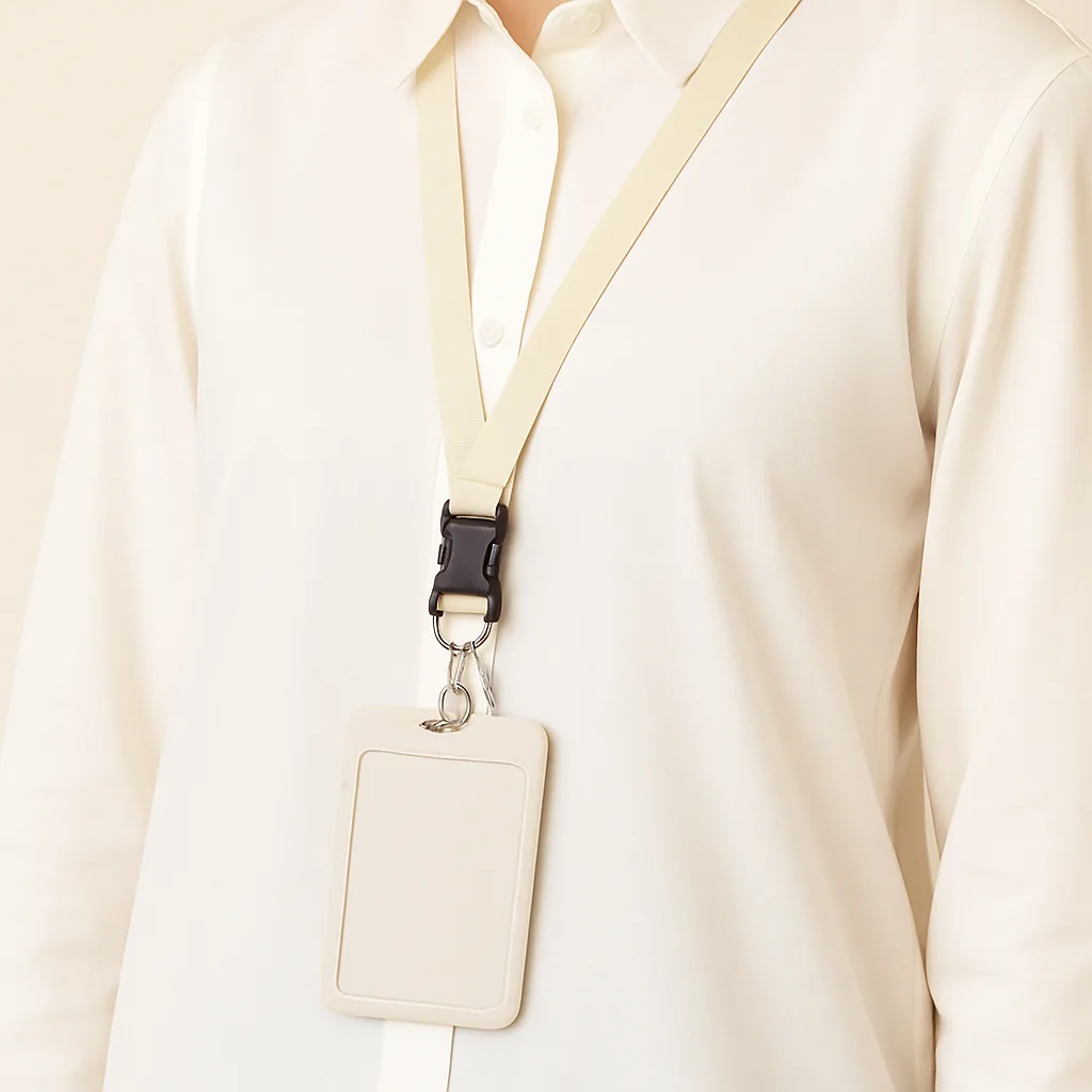 Pashouder Crème – Inclusief Afneembaar Keycord & Telefoonkoord