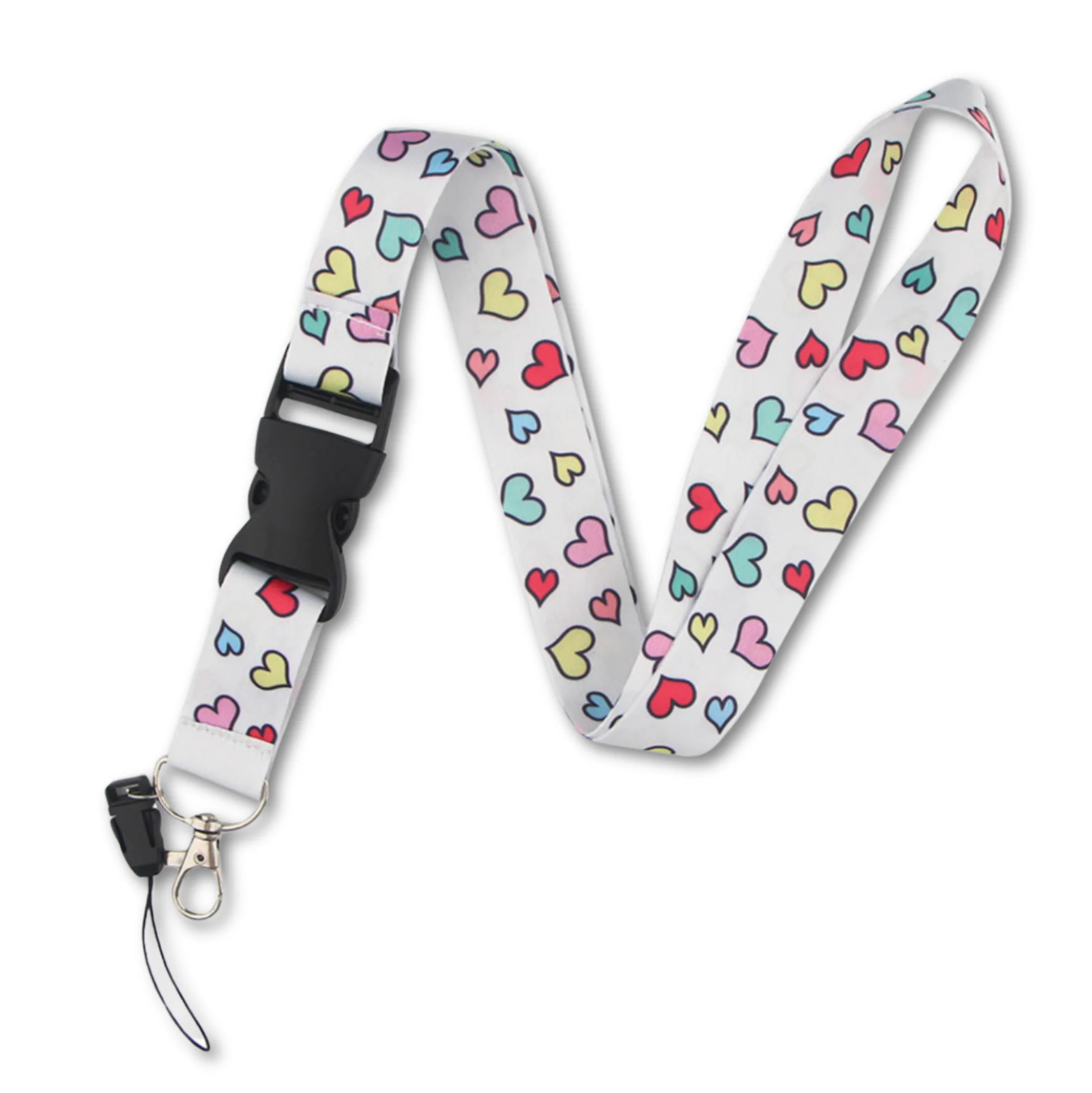 Keycord Colorful Hearts Wit – Stevig en Praktisch Lanyard met Clipsysteem