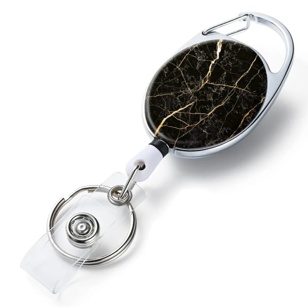 Op zoek naar een veelzijdige badgehouder die perfect past bij elke situatie? Deze hoogwaardige badgehouder RVS Black Marble van roestvrij staal en dik nylon telescopisch koord is voorzien van een clip aan de achterzijde voor moeiteloos dragen.