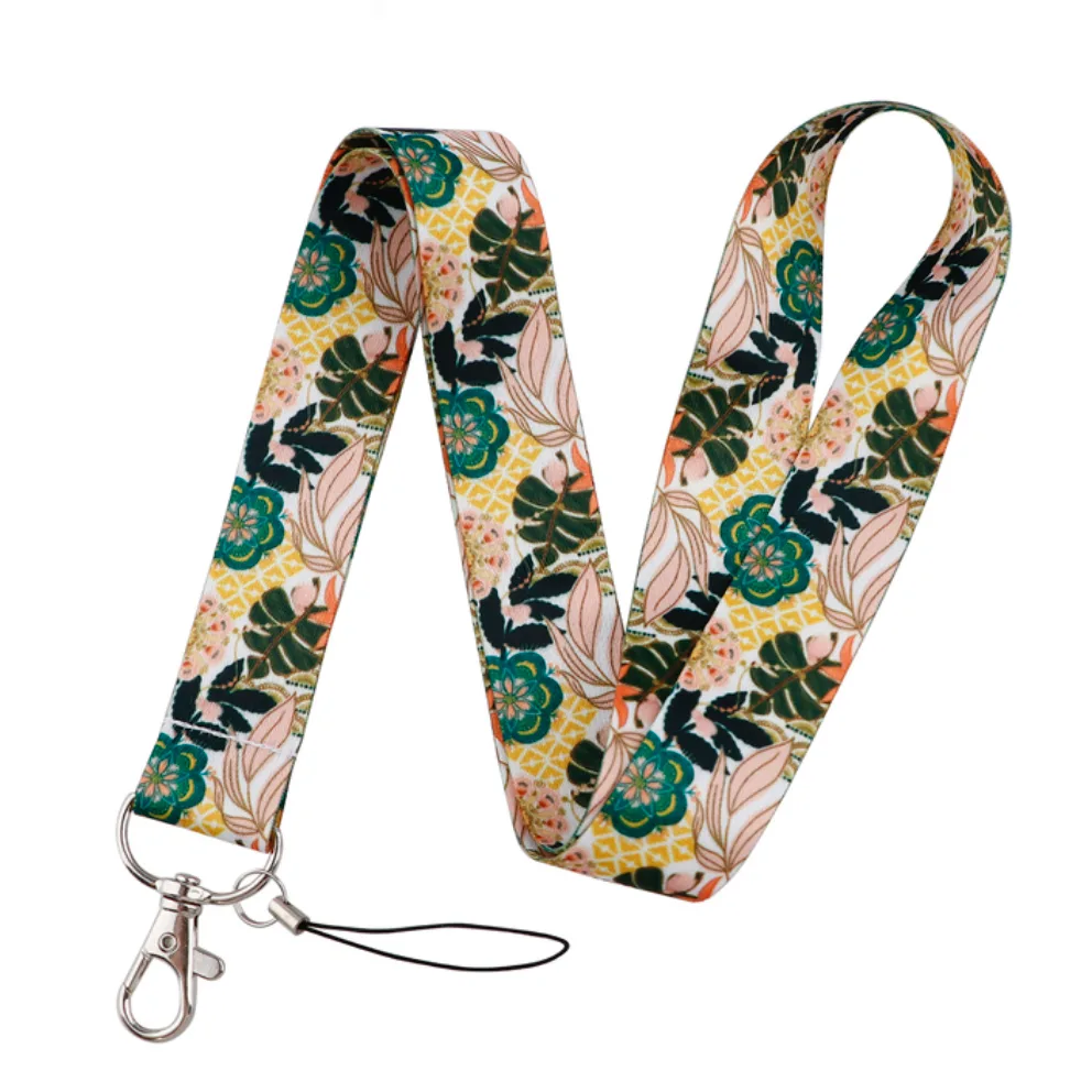 Dit multifunctionele stevige keycord Autumn Flowers beschikt over een afneembare pashouder (ook te gebruiken als naambadge) en een afneembaar telefooncord.