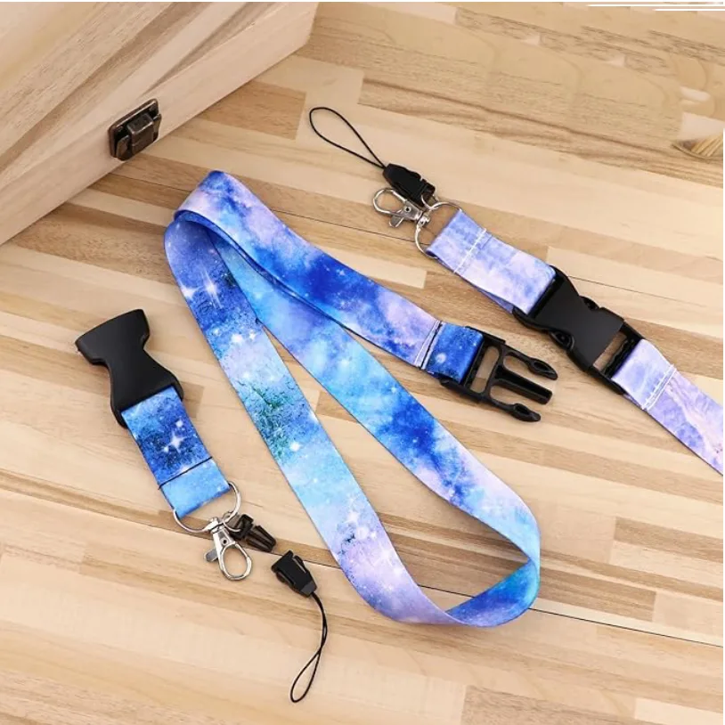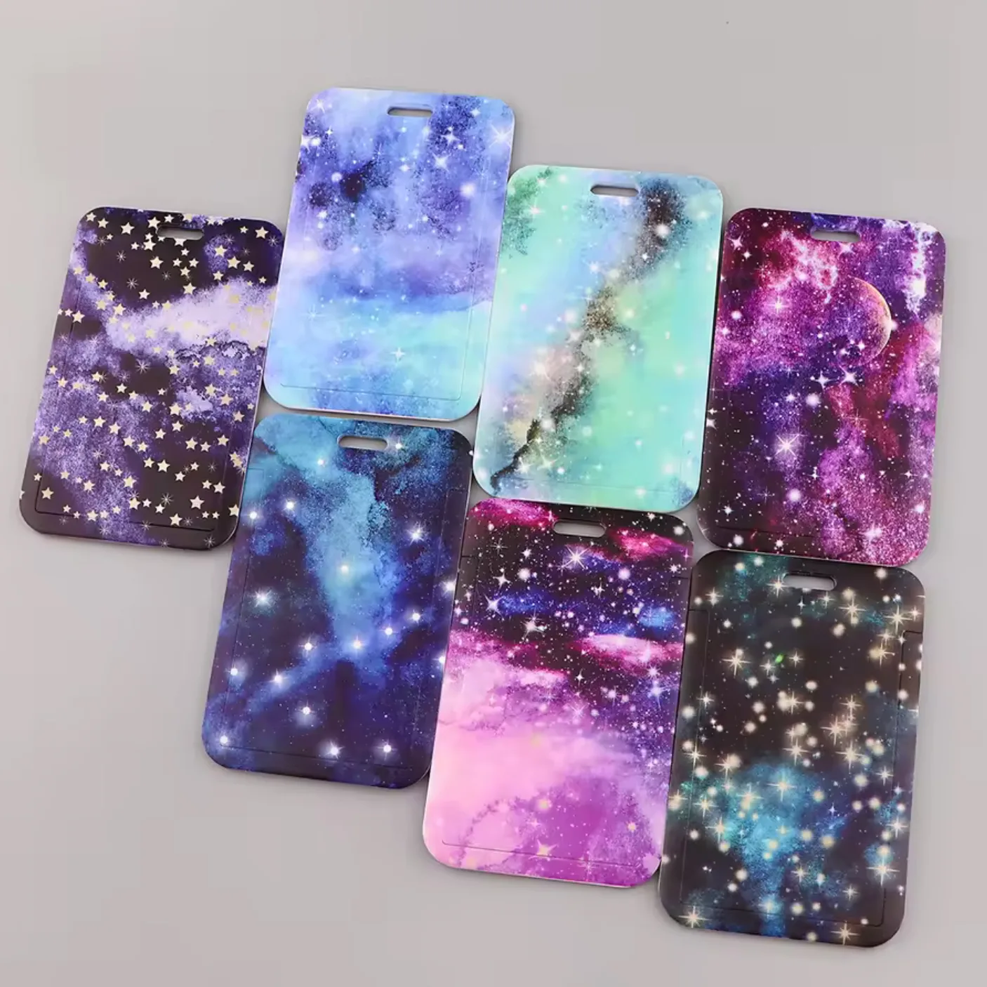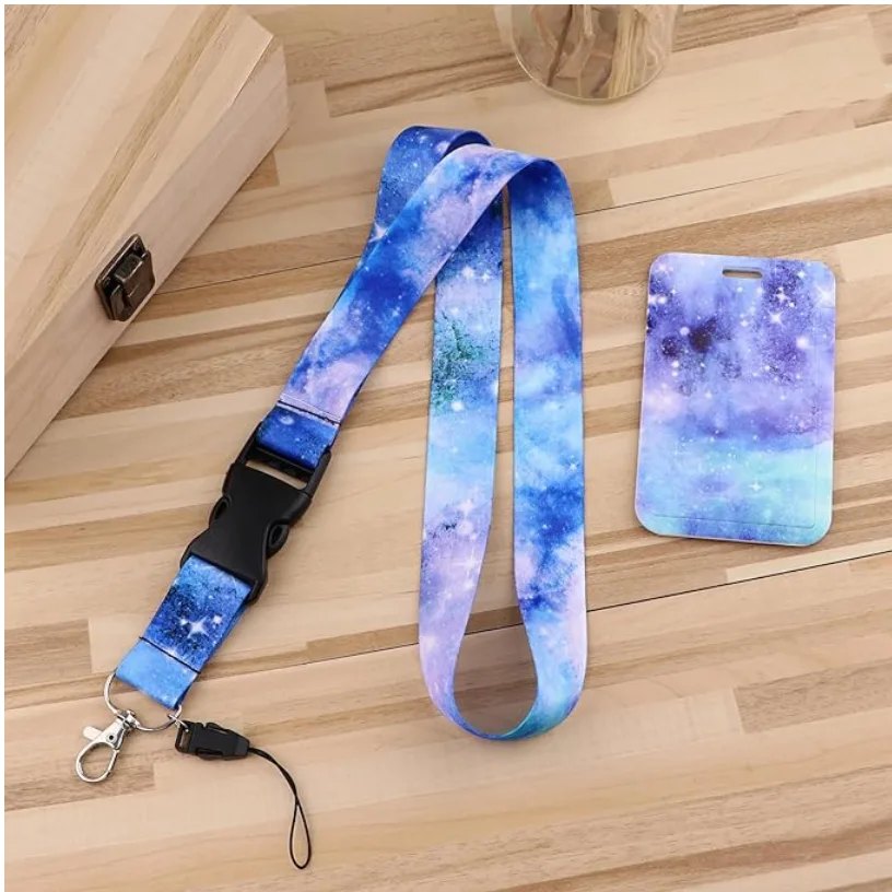 Pashouder Galaxy Blauw – Inclusief Afneembaar Keycord & Telefoonkoord