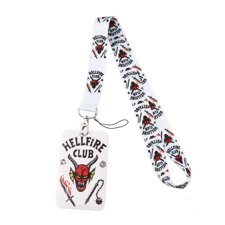Dit multifunctionele stevige keycord met pashouder Hellfire Club bekend van de serie Stranger Things beschikt over een afneembare pashouder (ook te gebruiken als naambadge) en een afneembaar telefooncord.