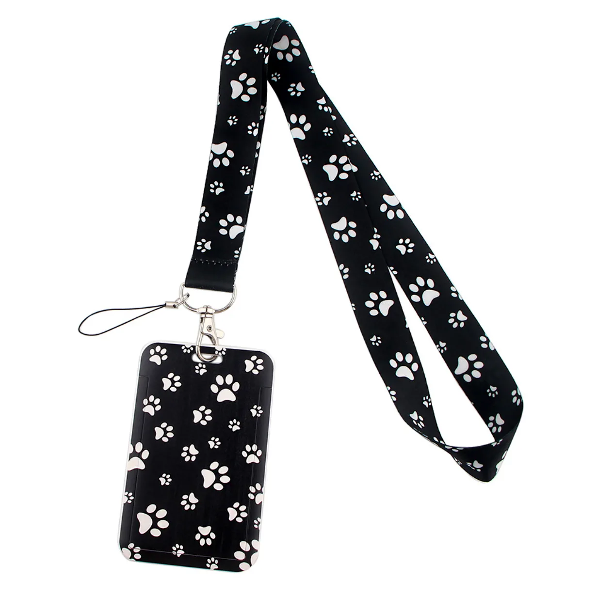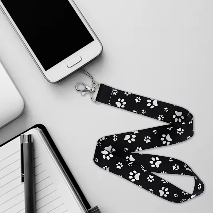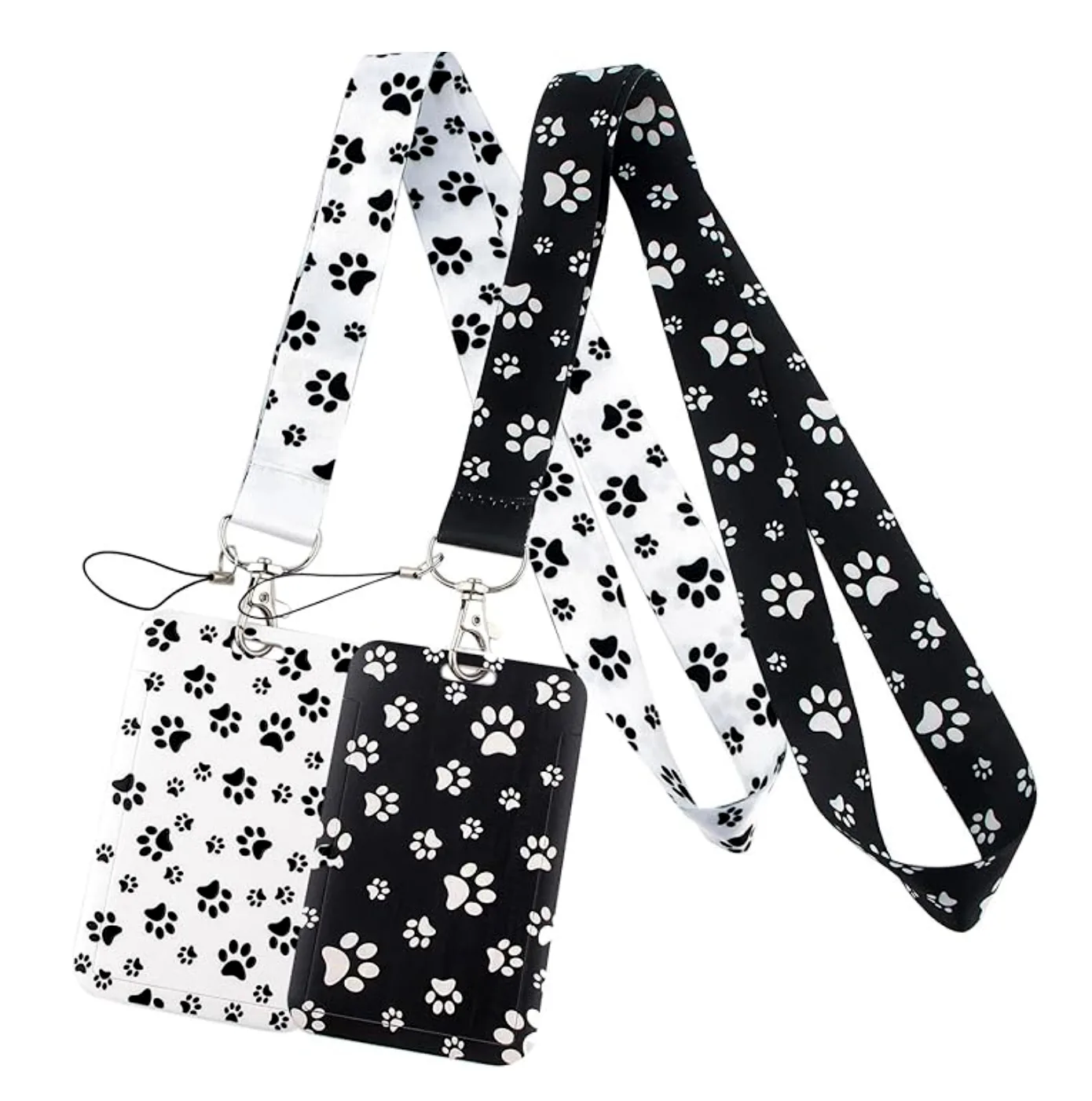 Pashouder Hondenpootjes Wit-Zwart – Inclusief Afneembaar Keycord & Telefoonkoord
