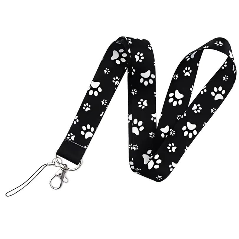 Keycord met Pashouder Hondenpootje Wit-Zwart