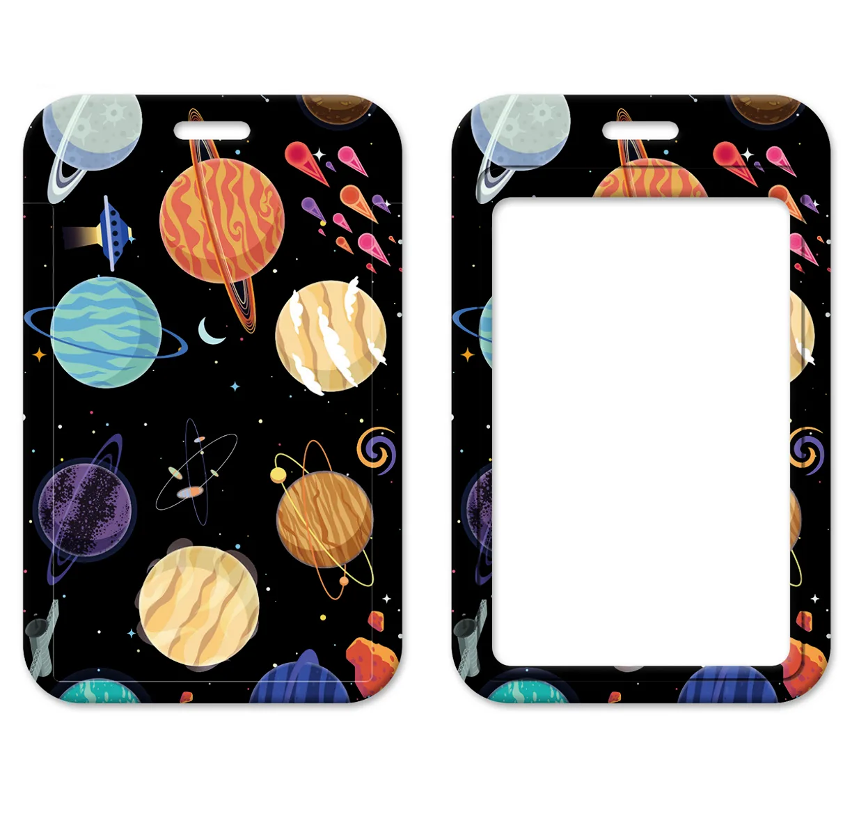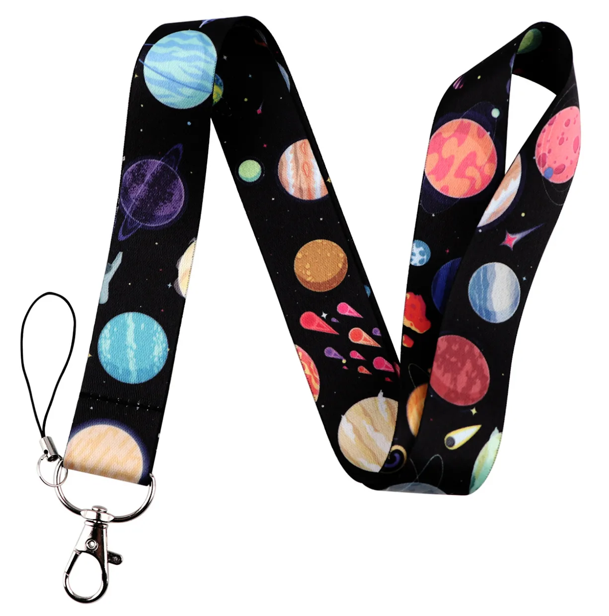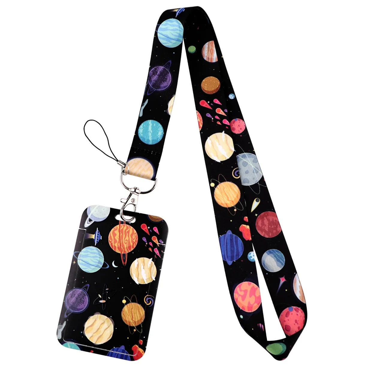 Dit multifunctionele stevige keycord Planeten beschikt over een afneembare pashouder (ook te gebruiken als naambadge) en een afneembaar telefooncord.