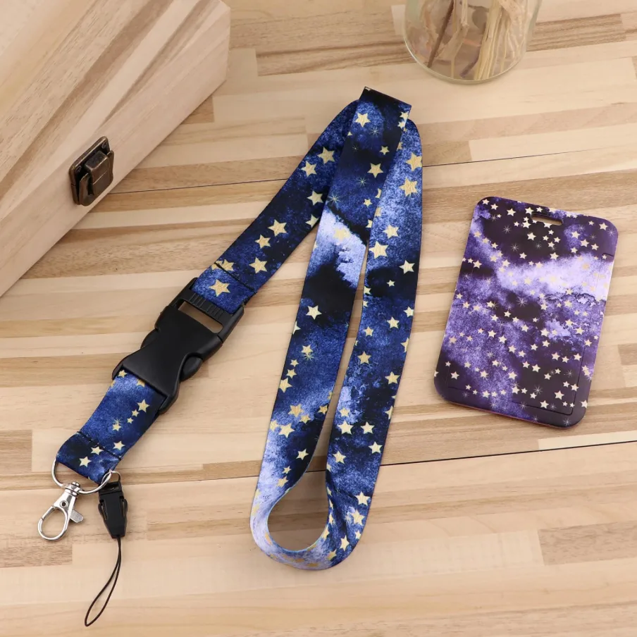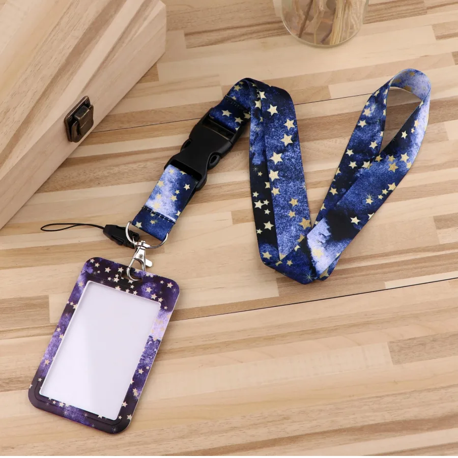 Pashouder Stars Blauw – Inclusief Afneembaar Keycord & Telefoonkoord