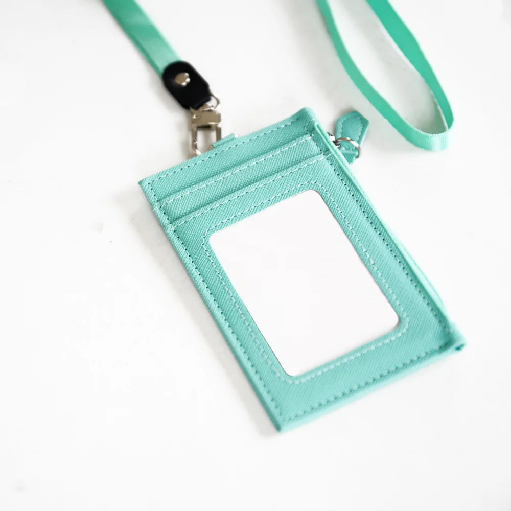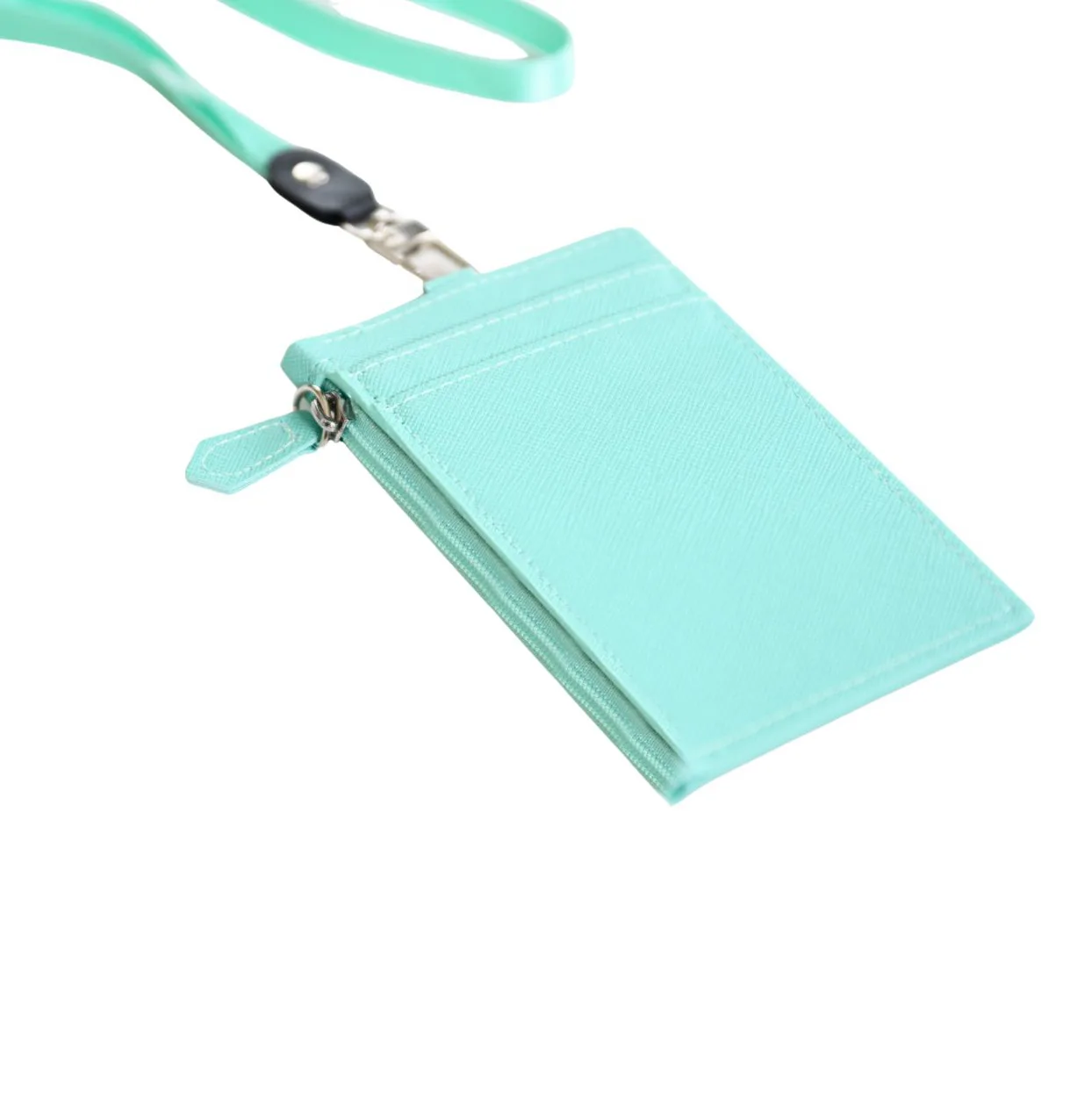 Deze multifunctionele stevige turquoise badgehouder beschikt over een afneembare pashouder van canvas.