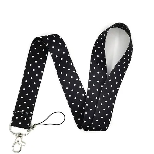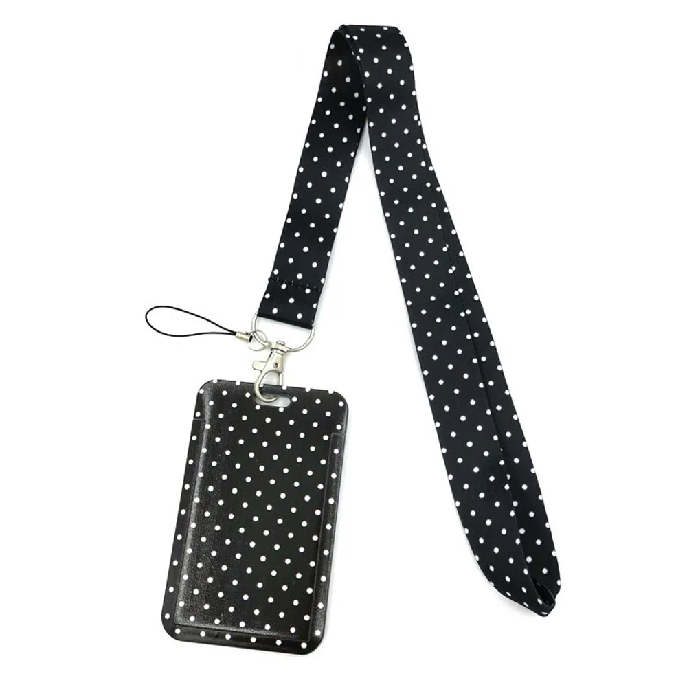 Dit multifunctionele stevige keycord White Dots beschikt over een afneembare pashouder (ook te gebruiken als naambadge) en een afneembaar telefooncord.