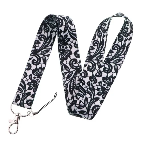 Keycord met Pashouder Zonnebloem Zwart-Wit