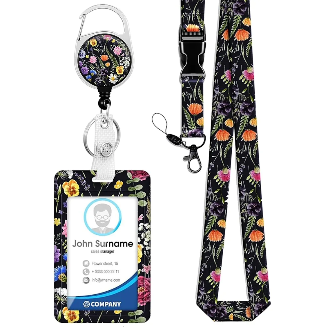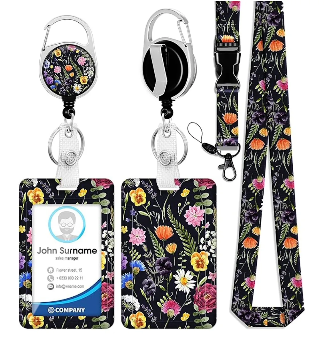 Houd al je pasjes en sleutels georganiseerd en binnen handbereik met deze stijlvolle 4-in-1 pashouder set met bloemenprint. Deze complete set bevat alles wat je nodig hebt voor dagelijks gebruik op werk, in ziekenhuizen, tijdens beurzen en congressen, of op school. Ideaal voor toegangspassen, ID-passen, bankpassen, liftpassen en meer.