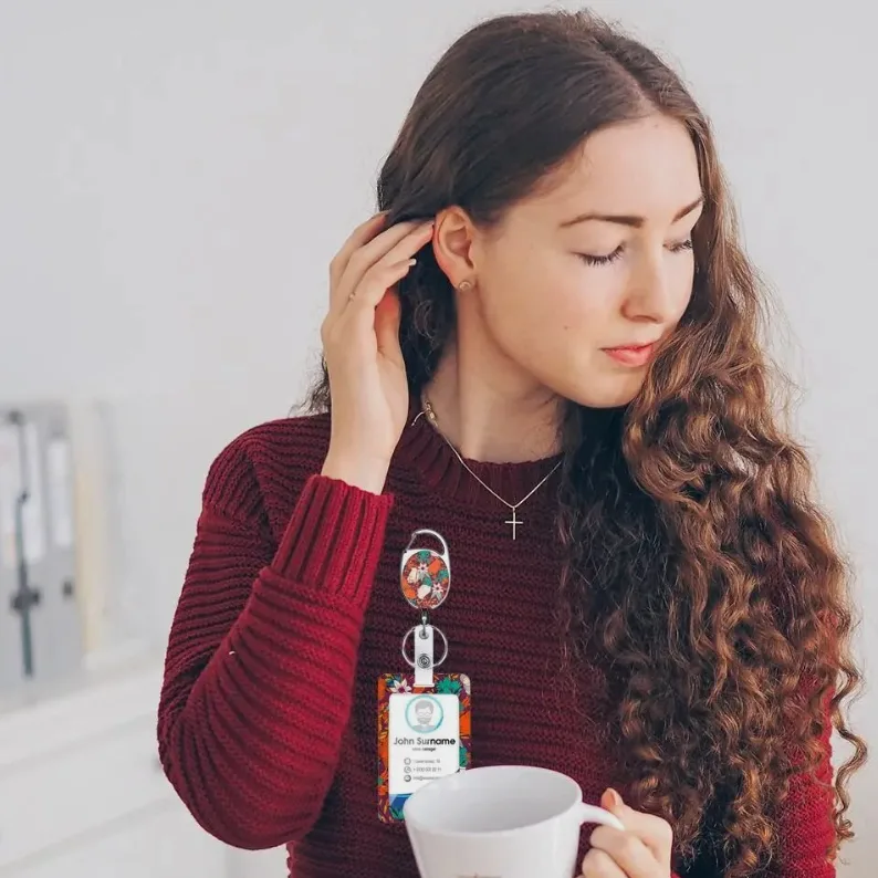- 1 afrolbare badgehouder met karabijnhaak en clip