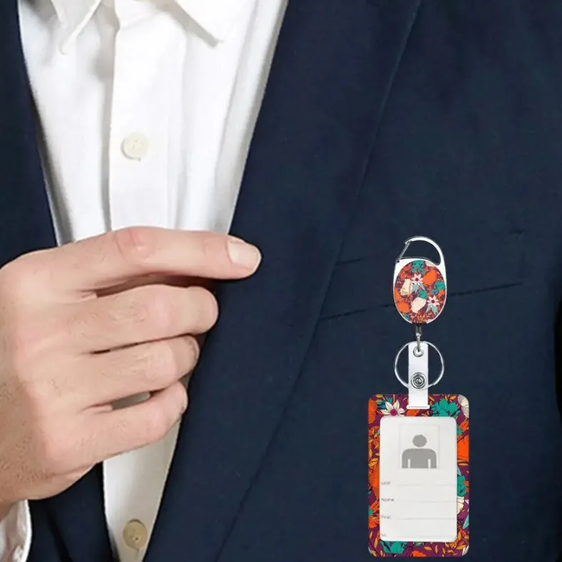 afrolbare badgehouder met bevestigingsclip en afrolmechanisme