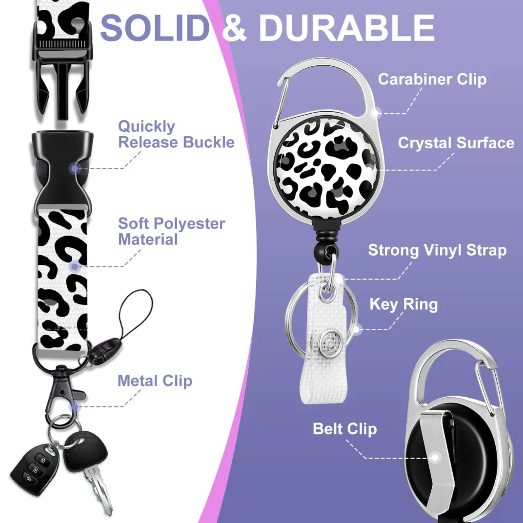 Houd al je pasjes en sleutels georganiseerd en binnen handbereik met deze stijlvolle 4-in-1 pashouder set met luipaardprint. Deze complete set bevat alles wat je nodig hebt voor dagelijks gebruik op werk, in ziekenhuizen, tijdens beurzen en congressen, of op school. Ideaal voor toegangspassen, ID-passen, bankpassen, liftpassen en meer.