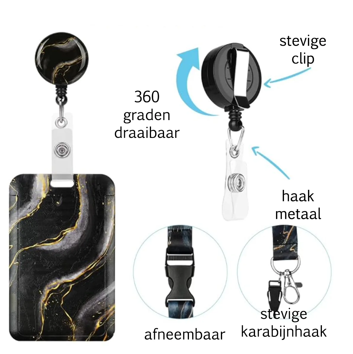 - Badgehouder met uitrekbaar koord en bevestigingsclip: Handig om je badge of toegangspas aan kleding te bevestigen en gemakkelijk uit te rekken.